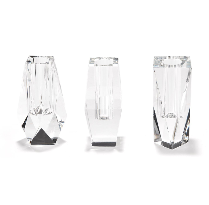 These faceted hand cut crystal glass vases, have beautiful lines almost picture perfect. These vases make a big impact and keep floral arranging easy.